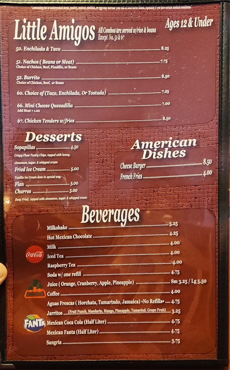 Whole black or pinto beans wrapped in a flour tortilla covered with salsa verde and jack cheese, once cheese enchilada covered in salsa verde and melted jack cheese, and one guacamole taco with lettuce, cheese, and tomato.