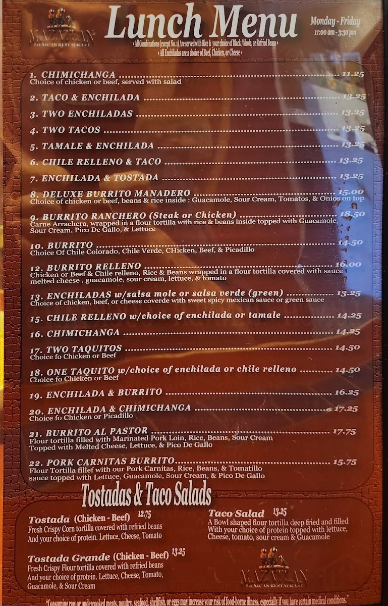 Choice of chicken, ground beef, or shredded beef wrapped in a flour tortilla, covered with delicious sweet and spicy Mexican mole sauce.